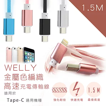 WELLY USB3.1 Type-C 金屬色編織高速傳輸充電線 (1.5M-150公分)玫瑰金 ![]() |